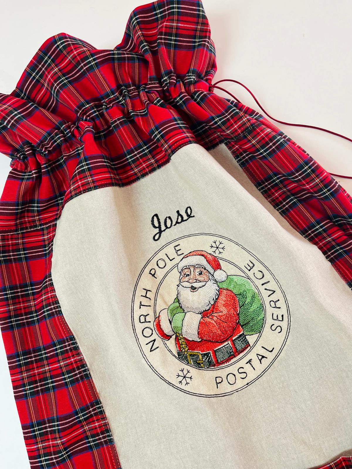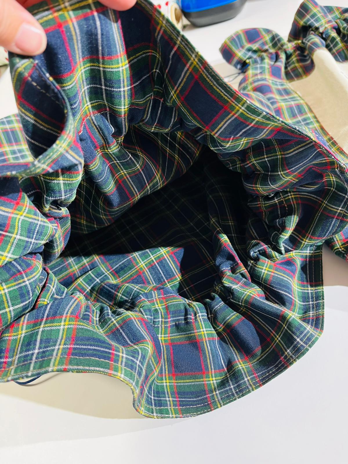 Confeccionado en tejido escocés de algodón y poliéster, disponible en tres colores tradicionales de la Navidad —rojo, verde y azul— y totalmente forrado para mayor resistencia y durabilidad.